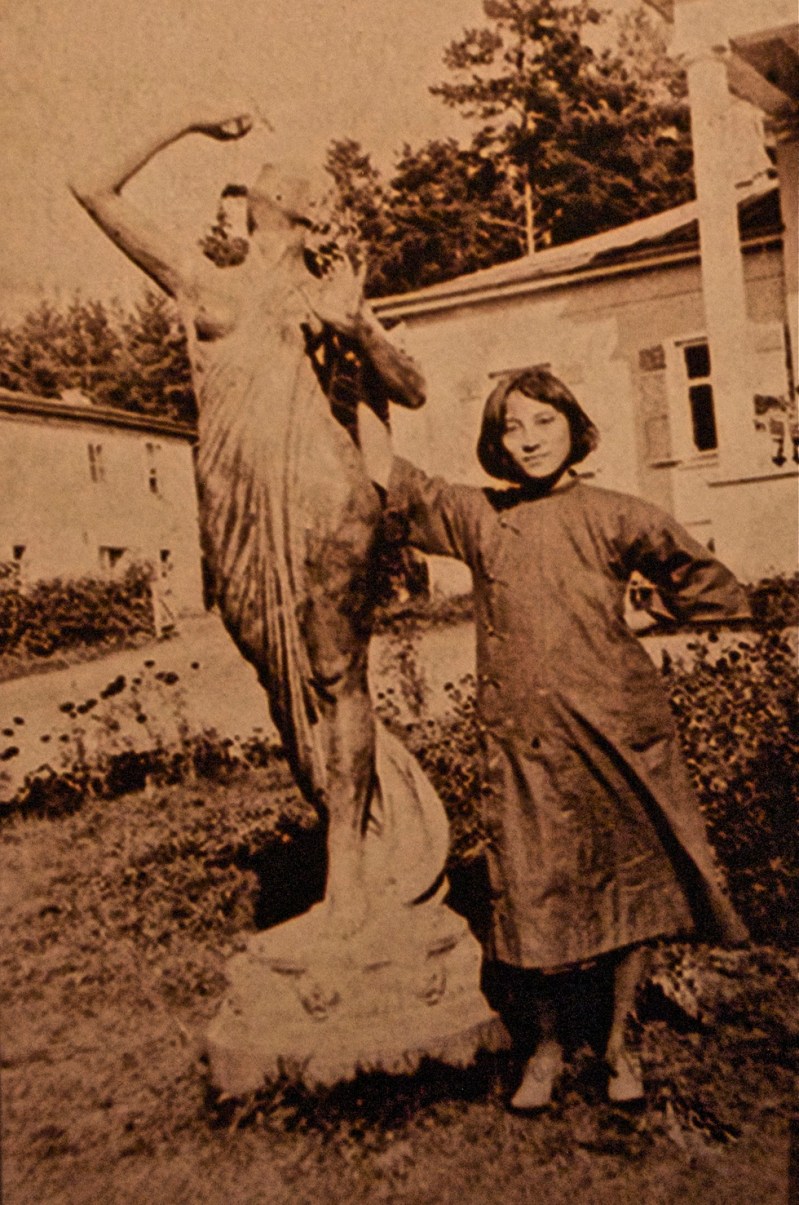 One image from my southern trip has, however, stayed with me. It is a black and white photograph of a young woman I saw in the Jiangxi Revolutionary Martyrs’ Memorial Hall (江西革命烈士纪念堂) in Nanchang, Jiangxi. The woman, in her mid-twenties stands in what looks like a small garden behind some western-style buildings. Her short-cropped hair and mandarin-style clothing place her in the Republican era of the 1920s or 1930s. In the photo she is posed next to a Western-style marble statue of a woman who appears to be dancing. Her right arm linked with the statue’s and other propped on her hip, the woman in the photograph projects confidence and idealism.