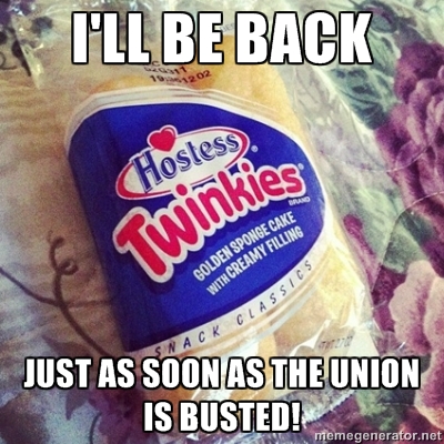 ‘maximizing the value of the estate’ quote makes it perfectly clear Twinkies are not going away. It’s just the union jobs that are going away. It’s not the Undead Twinkies that scare me, it’s the economic damage that scares me.