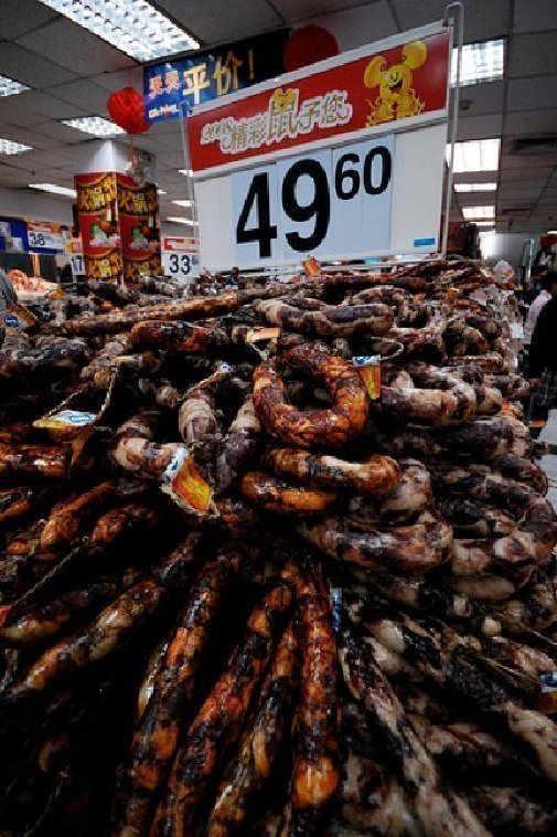 Clearly on the most superficial level, the email is predicated on sharing the sensational images of an “exotic orient” where Chinese consume unusual foods with unusual names in unusual ways—a fact anticipated by the title written in broken English—”Welcome to Chinese Walmart.” In this sense, the email is the latest in a long line of examples of curiosities intended to titillate and entertain—with a lineage, no doubt, that stretches back to the exhibitions of the colonial era of the 19th century.