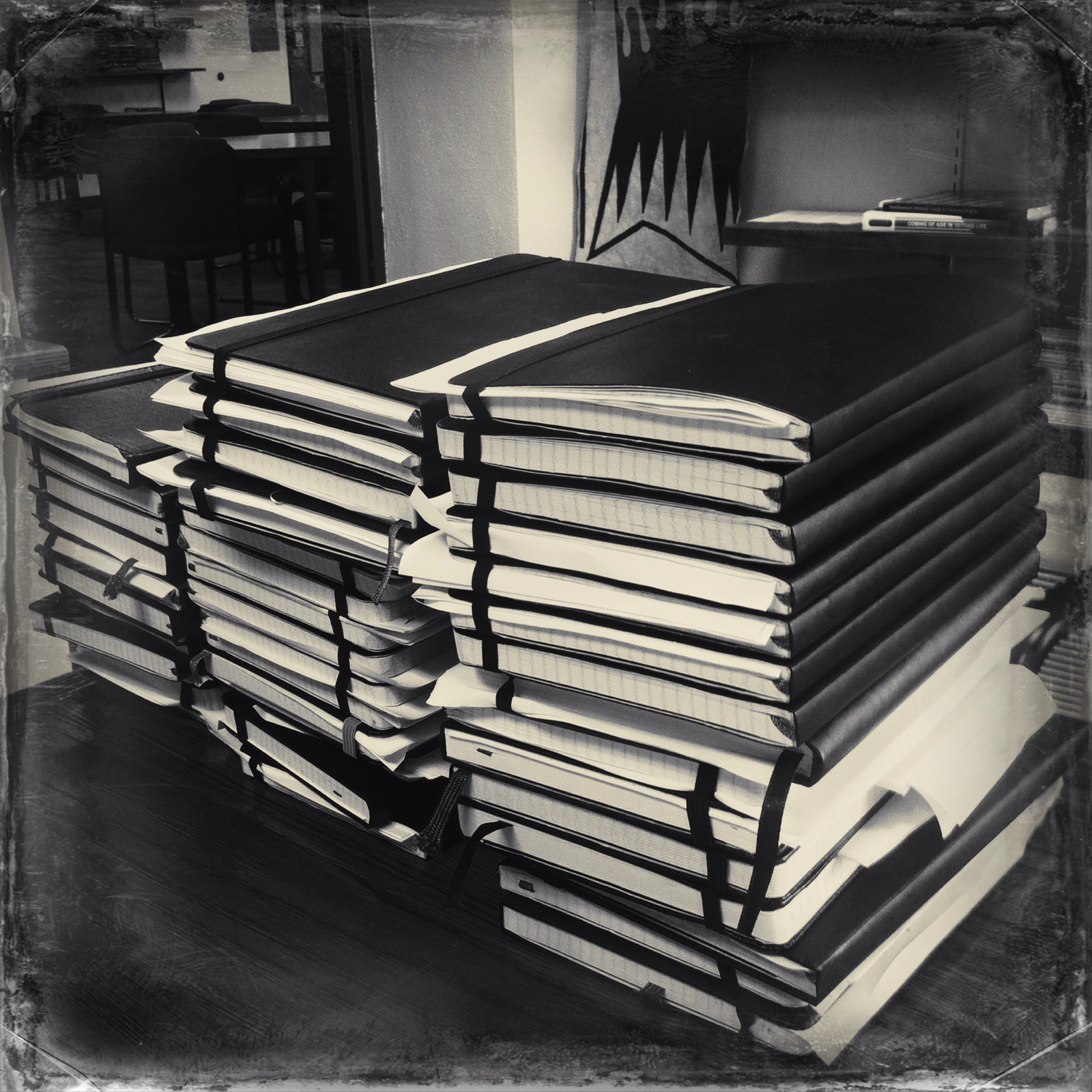 At least taking a fake Daguerreotype photo of the pile of black Moleskine notebooks, and posting it on Facebook makes it feel like the work of grading is more profound than it might otherwise be.