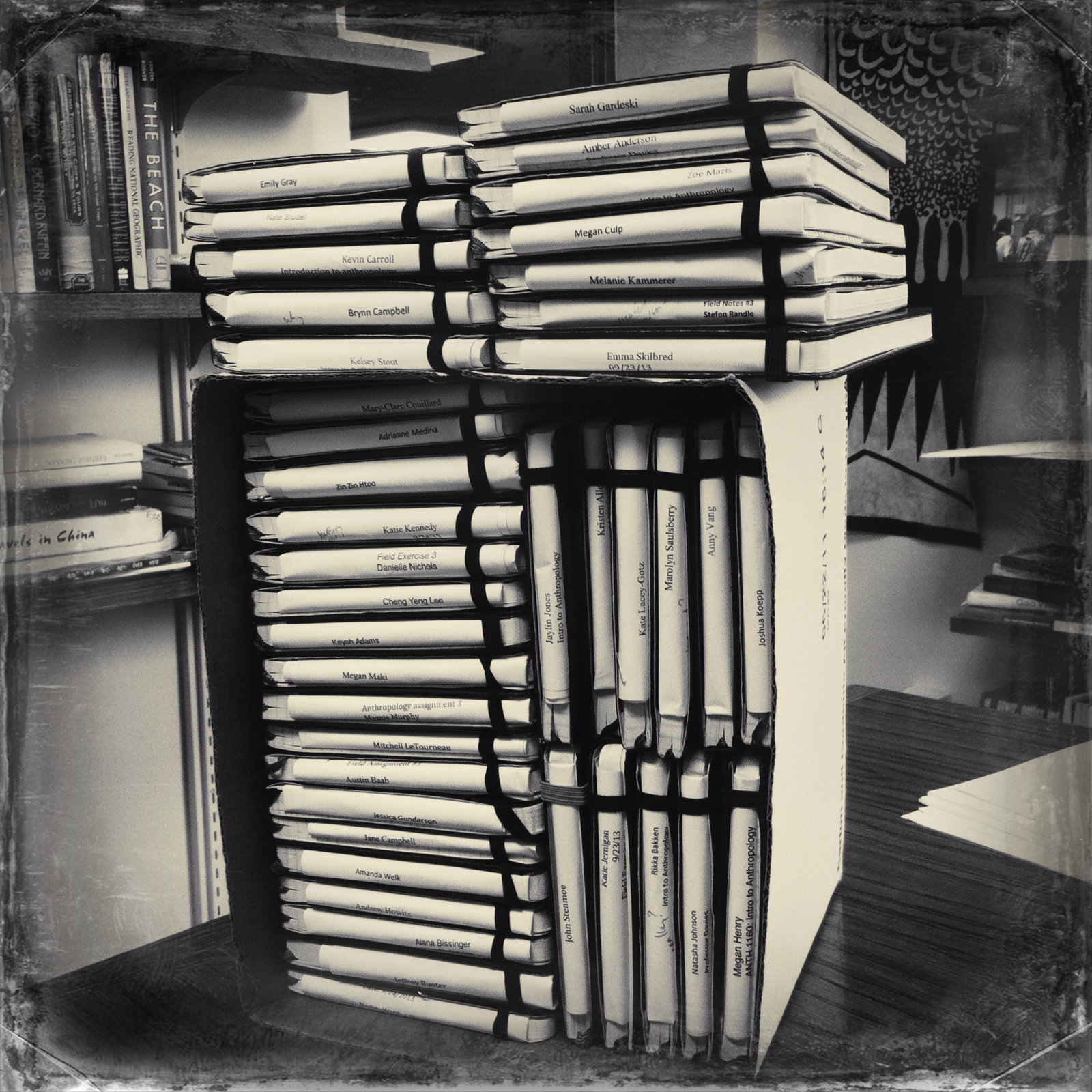 Weekly field assignments are making for a very interesting and useful pedagogical experiment in this Fall’s Introduction to Anthropology class. Reviewing and scoring the field journals each Tuesday, however, makes for some intense grading.