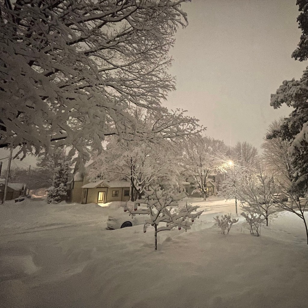 Two hours ago I woke up to that special kind of muffled winter silence, pulled the shade, and looked out the window. While we slept, the weather remade our average neighborhood into a fantastic land. We got the kind of snow that makes Minnesota a special place to live. I couldn’t wait for our 4th grader to wake up and see the outside prepared this way for him. An unexpected forest beyond the wardrobe!