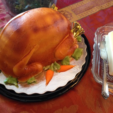This Thanksgiving featured something that I just couldn’t resist adding to my online collection of mystery objects—a cake frosted to look like a roast turkey, complete with frosted lettuce and carrot garnish. (I took a photo of it next to a butter dish for effect.) Why anyone would ever want a cake-shaped meat is beyond me, but its curious existence was a source of joy for folks assembled at our Thanksgiving table. Such a unique sugary creation harkens back to […]