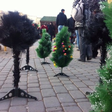 This is a quick snap from my iPhone of some Christmas Trees I found for sale in the square at Meknes, Morocco. If I had had more time I would have taken a few more, but this does capture the range of styles–green ones with fruit and mysterious black ones with trunks. The one in the foreground on the right even has a light dusting of snow. I have no idea who might be buying these or where they were […]